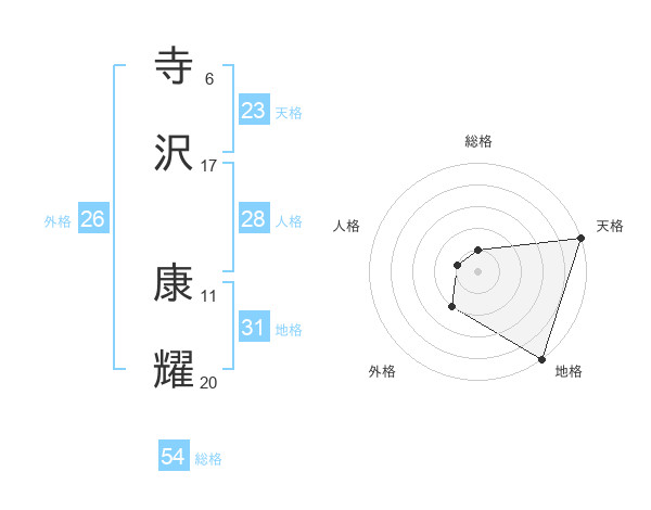 寺沢 康耀さんの天格は23画の5点!