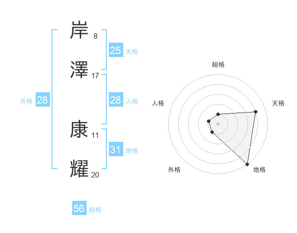 岸澤 康耀さんの総格は56画の1点!