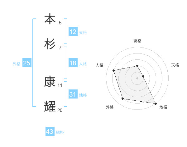 本杉 康耀さんの地格は31画の5点!