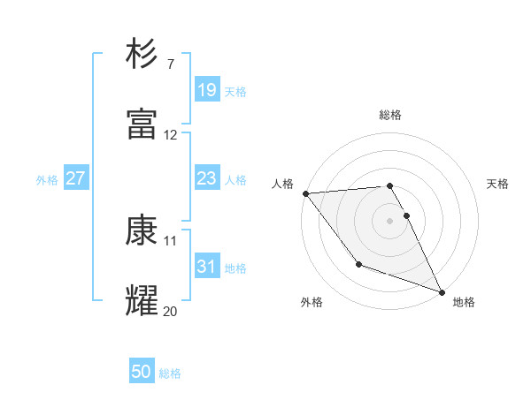 杉富 康耀さんを姓名の画数から五運を鑑定