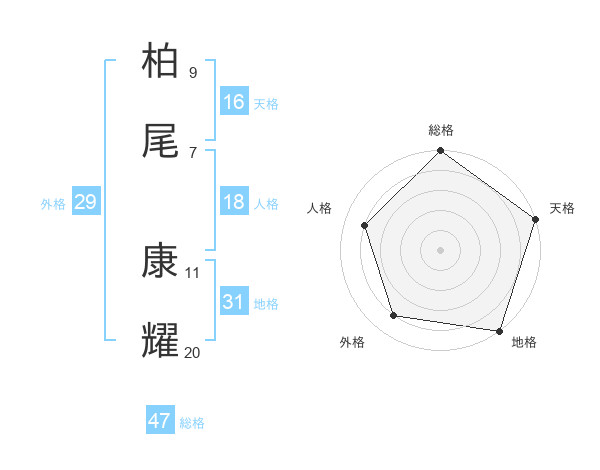 柏尾 康耀さんの総格は47画の5点!