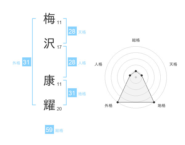梅沢 康耀さんの地格は31画の5点!