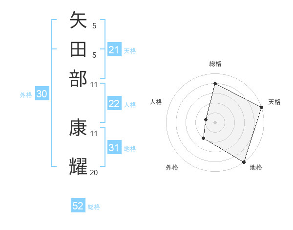 矢田部 康耀さんを姓名の画数から五運を鑑定