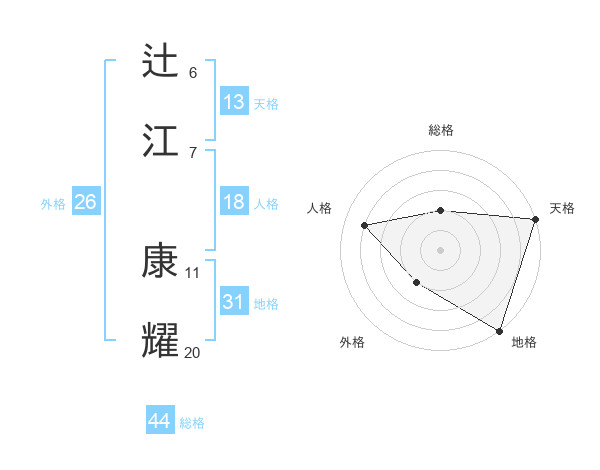 辻江 康耀さんの外格は26画の2点!