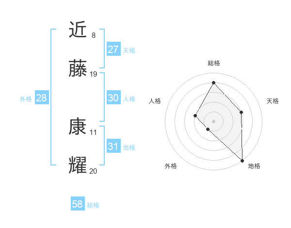 近藤 康耀さんを姓名の画数から五運を鑑定