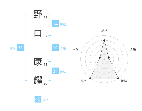 野口 康耀さんの総格は45画の4点!