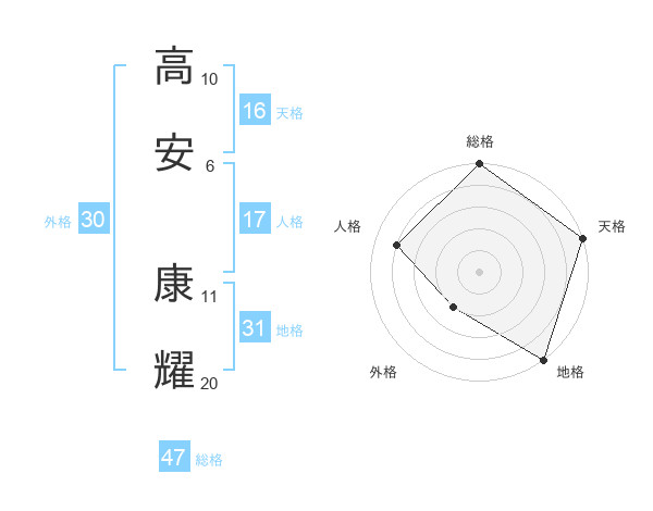 高安 康耀さんの地格は31画の5点!