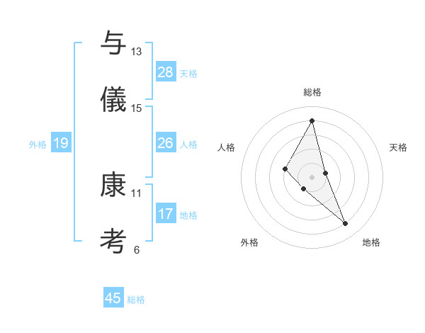 与儀 康考さんの総格は45画の4点!