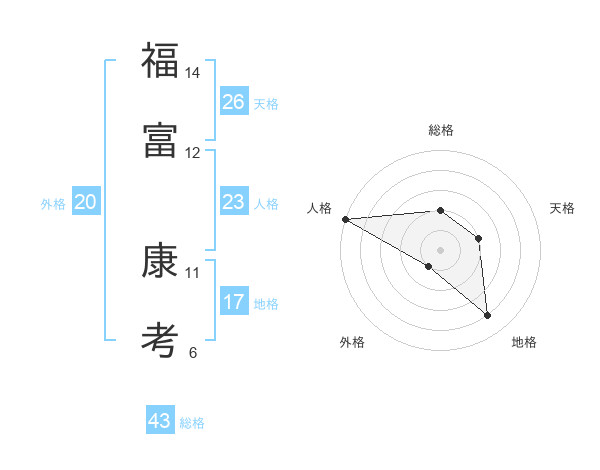 福富 康考さんの総格は43画の2点!