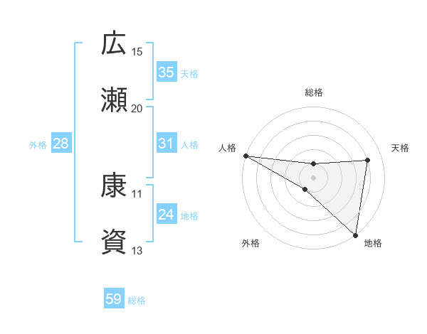 広瀬 康資さんの総格は59画の1点!