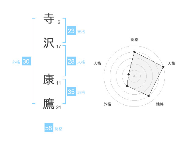 寺沢 康鷹さんを姓名の画数から五運を鑑定