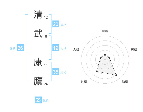 清武 康鷹さんを姓名の画数から五運を鑑定