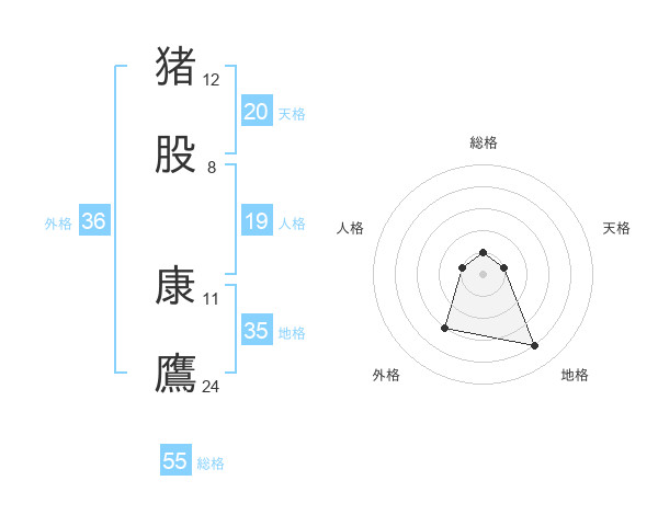 猪股 康鷹さんの総格は55画の1点!