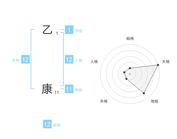 乙 康さんの外格は12画の1点!