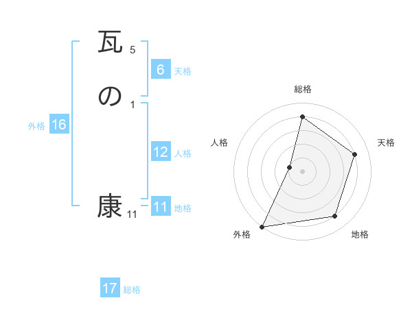 瓦の 康さんの総格は17画の4点!