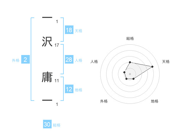 一沢 庸一さんの人格は28画の1点!