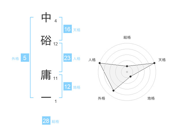 中硲 庸一さんの人格は23画の5点!