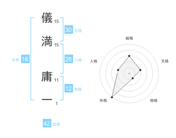儀満 庸一さんを姓名の画数から五運を鑑定