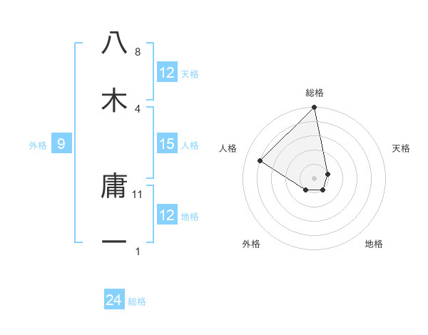 八木 庸一さんの総格は24画の5点!
