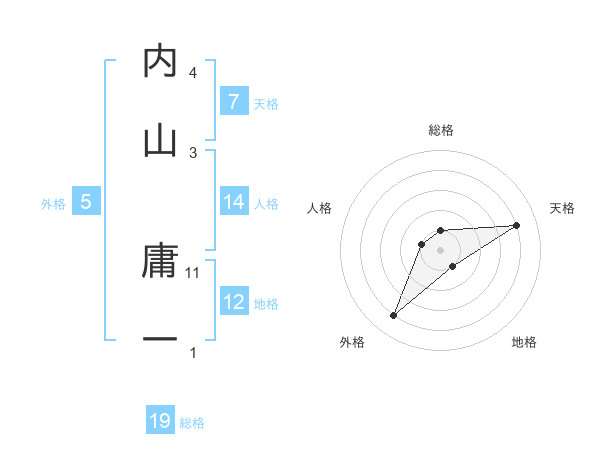 内山 庸一さんの総格は19画の1点!