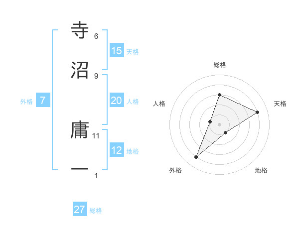 寺沼 庸一さんの総格は27画の3点!