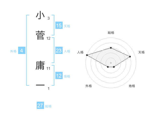 小菅 庸一さんを姓名の画数から五運を鑑定
