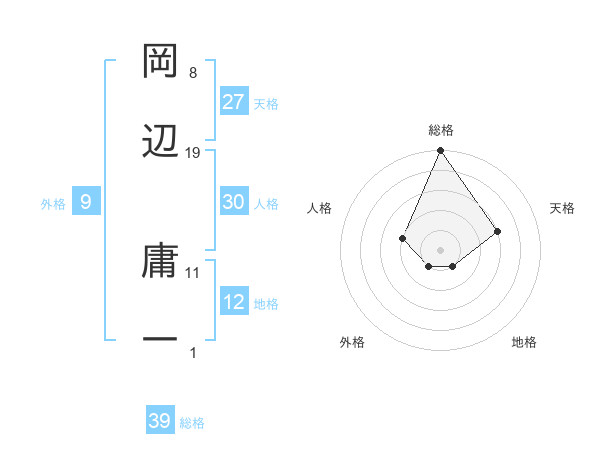岡辺 庸一さんの総格は39画の5点!