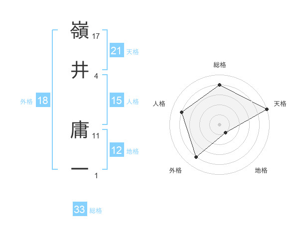 嶺井 庸一さんを姓名の画数から五運を鑑定