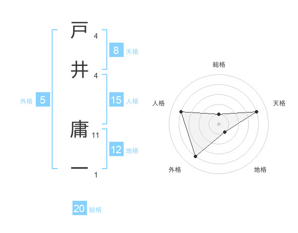 戸井 庸一さんを姓名の画数から五運を鑑定