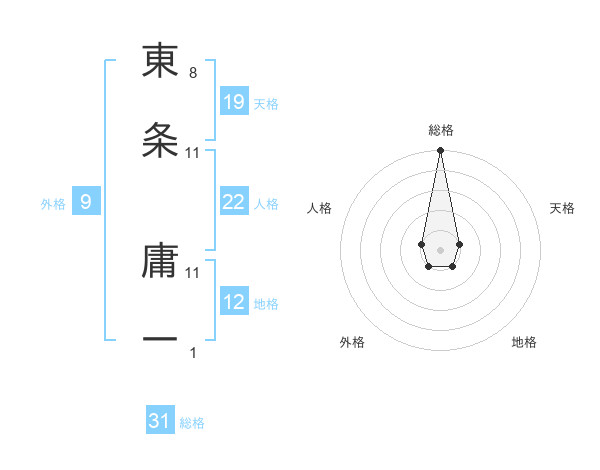 東条 庸一さんの総格は31画の5点!