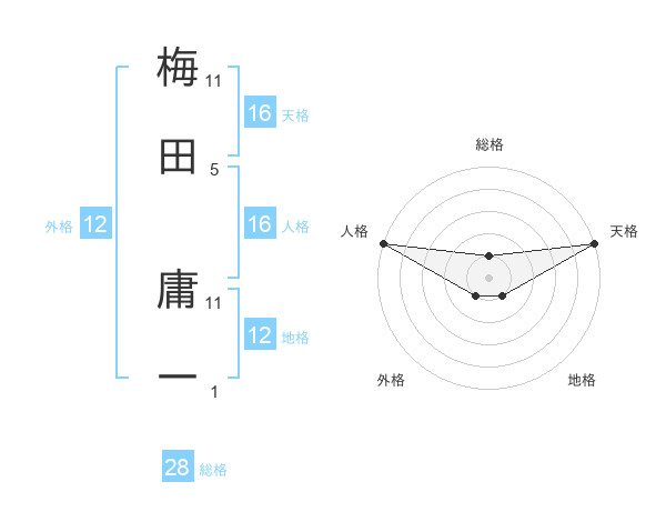 梅田 庸一さんを姓名の画数から五運を鑑定