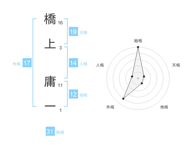 橋上 庸一さんを姓名の画数から五運を鑑定