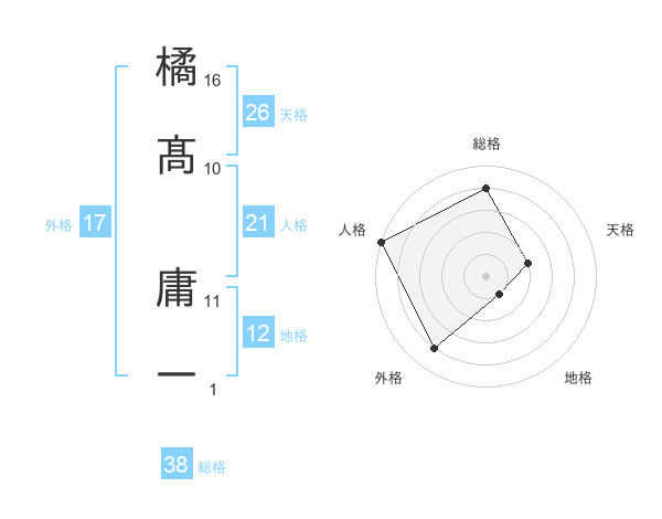 橘髙 庸一さんの総格は38画の4点!