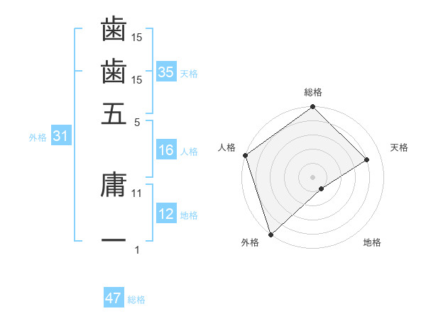 歯歯五 庸一さんの総格は47画の5点!