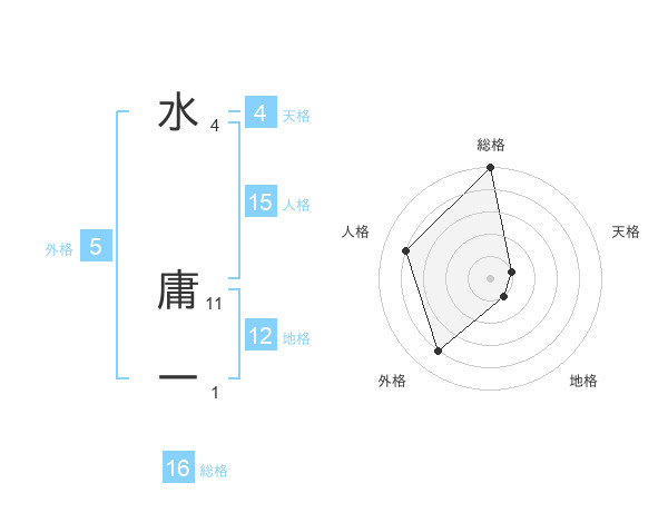 水 庸一さんの総格は16画の5点!