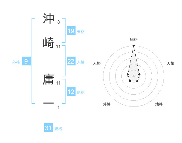 沖崎 庸一さんの総格は31画の5点!