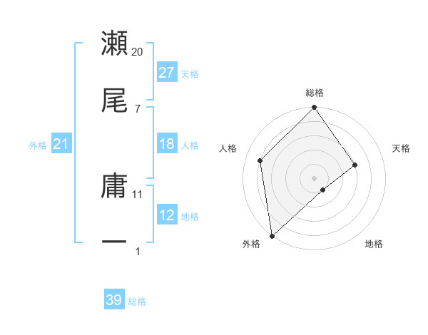 瀬尾 庸一さんの天格は27画の3点!
