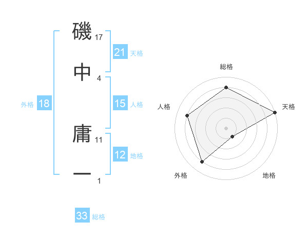 磯中 庸一さんを姓名の画数から五運を鑑定