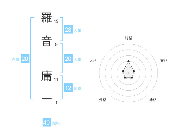 羅音 庸一さんを姓名の画数から五運を鑑定
