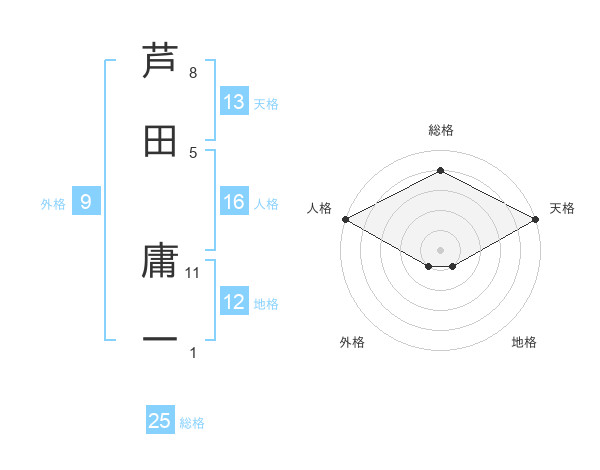 芦田 庸一さんを姓名の画数から五運を鑑定