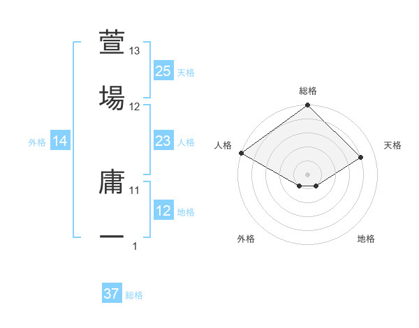 萱場 庸一さんを姓名の画数から五運を鑑定