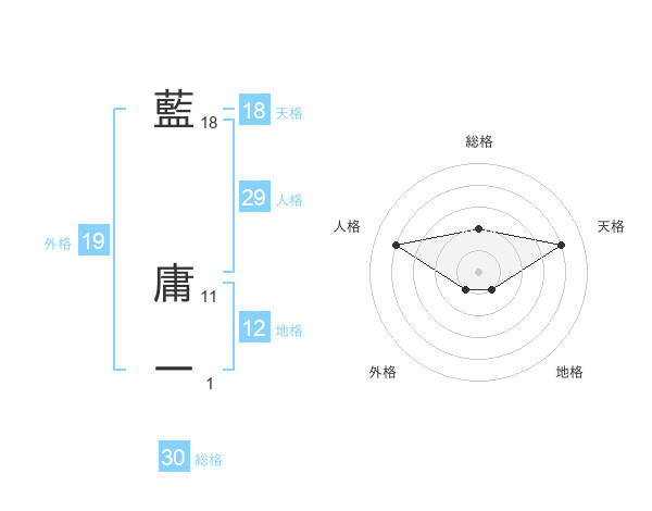藍 庸一さんの総格は30画の2点