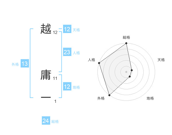 越 庸一さんの地格は12画の1点!