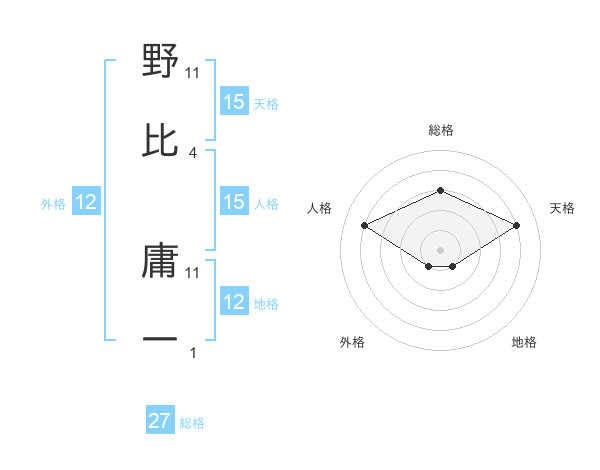 野比 庸一さんの総格は27画の3点!