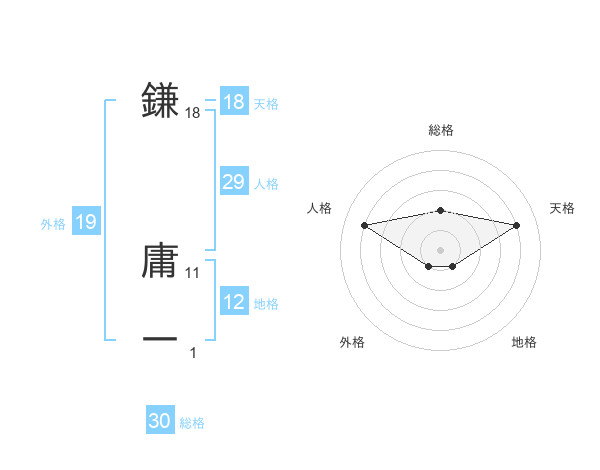 鎌 庸一さんを姓名の画数から五運を鑑定