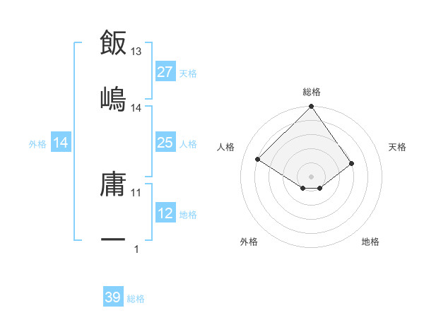 飯嶋 庸一さんの総格は39画の5点!