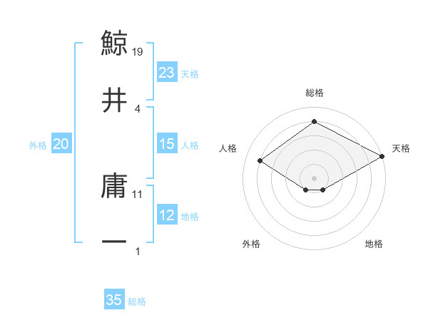 鯨井 庸一さんの天格は23画の5点!