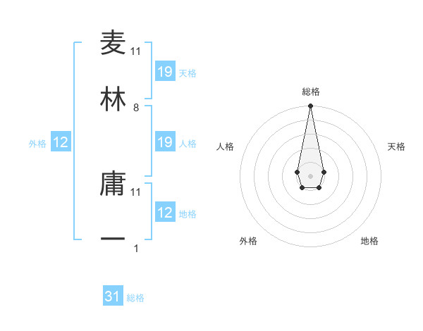 麦林 庸一さんの総格は31画の5点!