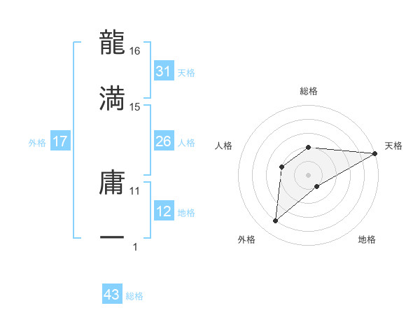 龍満 庸一さんの天格は31画の5点!