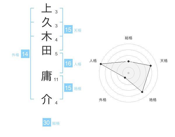 上久木田 庸介さんの総格は30画の2点!